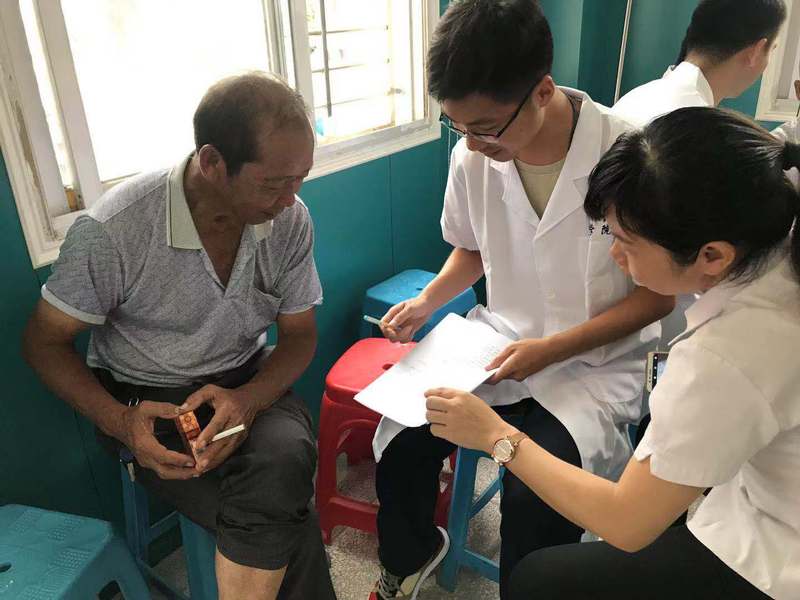 在此次社会实践中,微生态研究院实践队主要以漳浦县旧镇中心卫生院为中心,以其管辖的农村中老年慢性病患者为研究对象,调研当地慢性病的发病情况和就诊管理情况。在社会实践期间,研究院成员同医院在职医护人员一起,到其管辖的各个乡村义诊,进行慢性病患者常规体检,了解其疾病管理情况。另外,成员通过问卷和访谈的形式,对社区医院的在职人员进行实地调研,详细了解社区医院卫生医疗资源配置情况,以及当地对慢性病管理采取的管理措施,调研当地的慢性病防治系统的运行情况、运行成效和不足之处及在运行过程中遇到的实际困难。